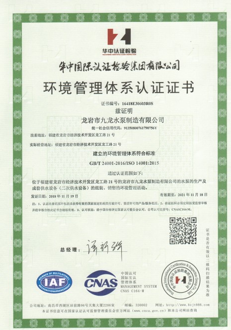 環(huán)境管理體系認(rèn)證證書