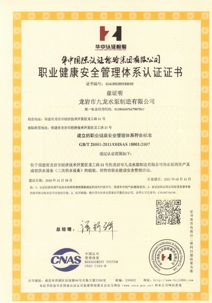 職業(yè)健康安全管理體系認(rèn)證證書