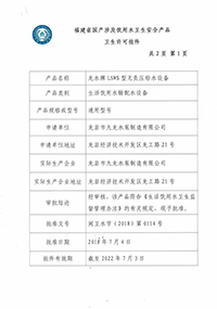 無負(fù)壓供水設(shè)備衛(wèi)生許可批件