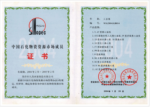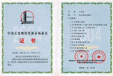 中國(guó)石化物資資源市場(chǎng)成員證書(shū)